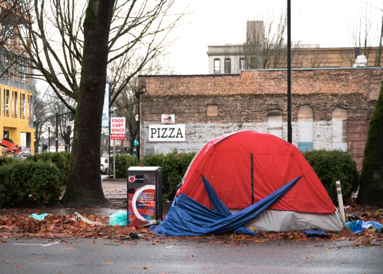 Au bord du canal Saint Martin on peut voir un village de tentes rouges…